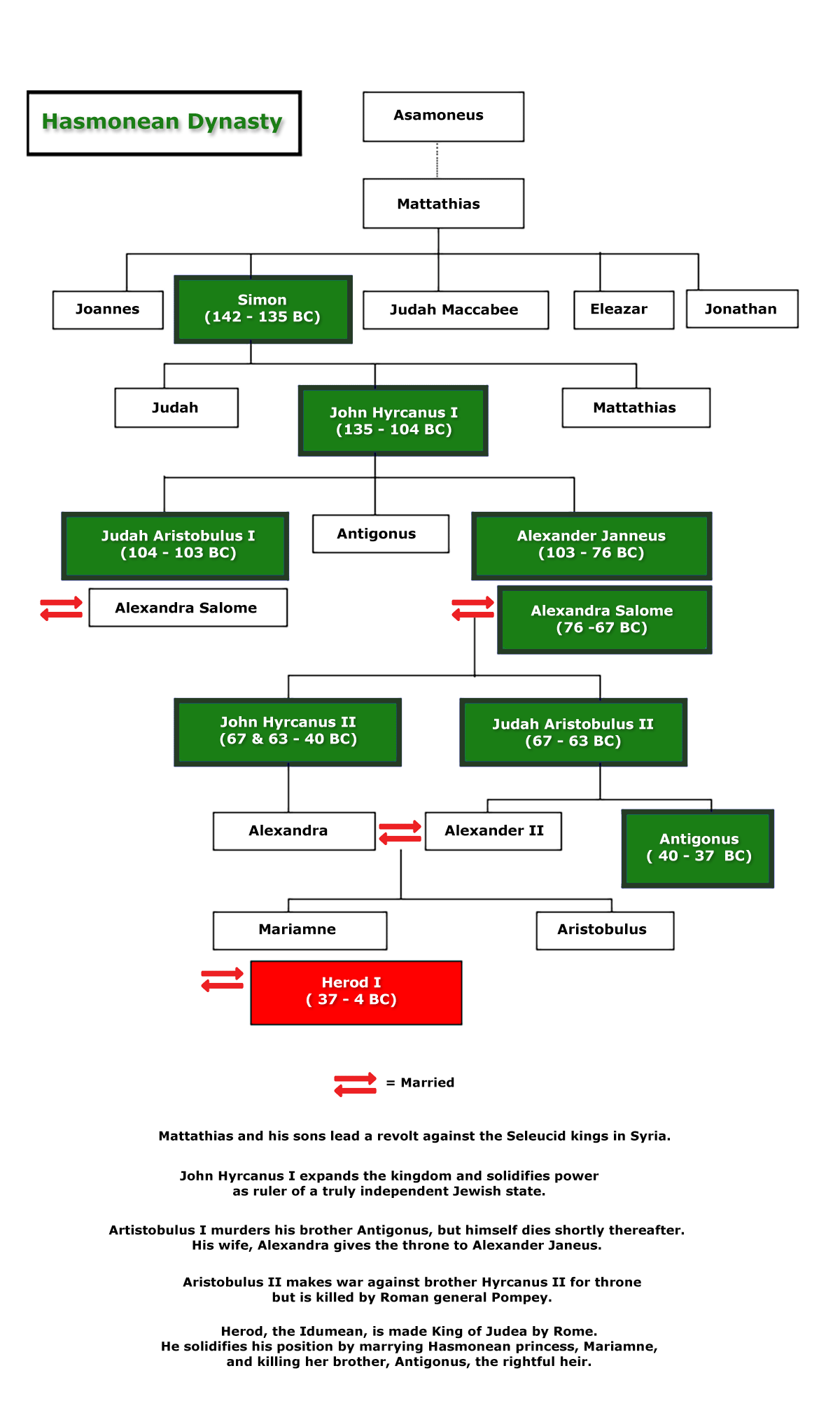 Hyrcanus ruled Judea for 31 years and was the first Hasmonean ruler to die of natural causes. Before his death, he sought to hand over rule to his wife, but his son, Judah Aristobulus didn’t like the idea. When his father died, he simply imprisoned his mother and most of his brothers and declared himself King.