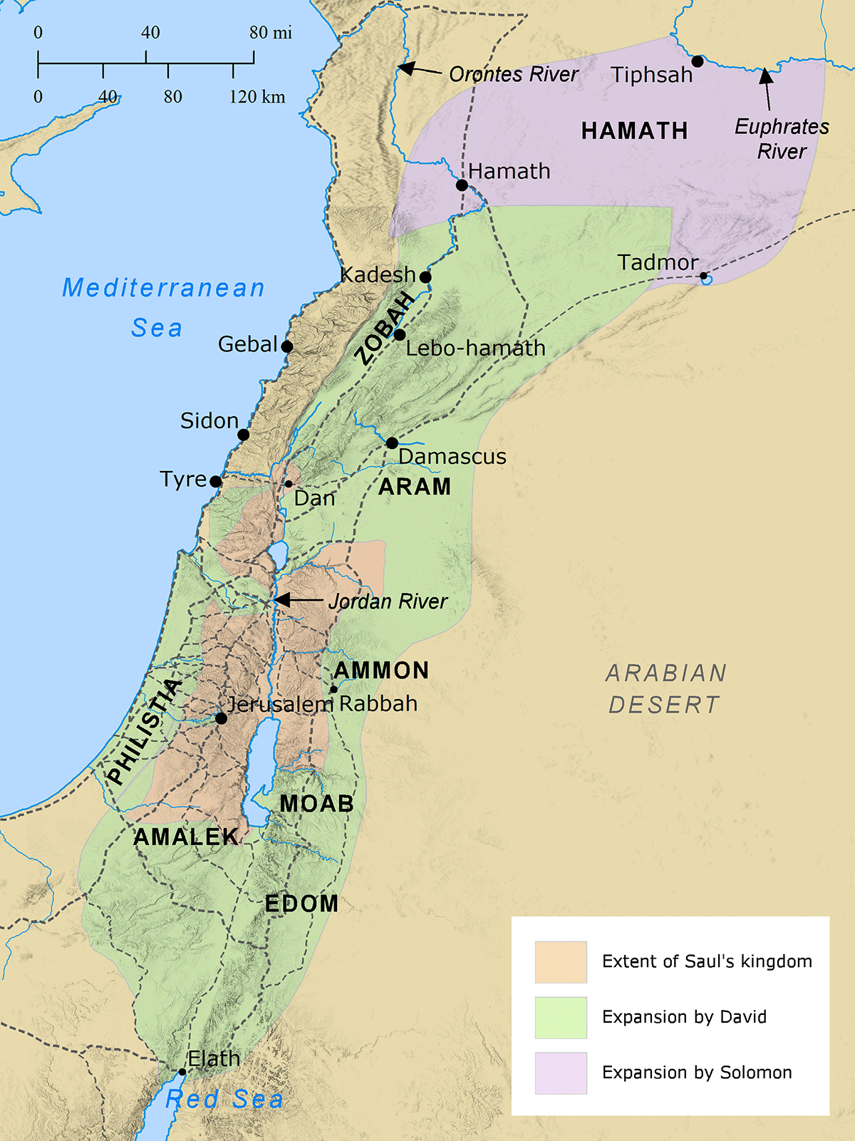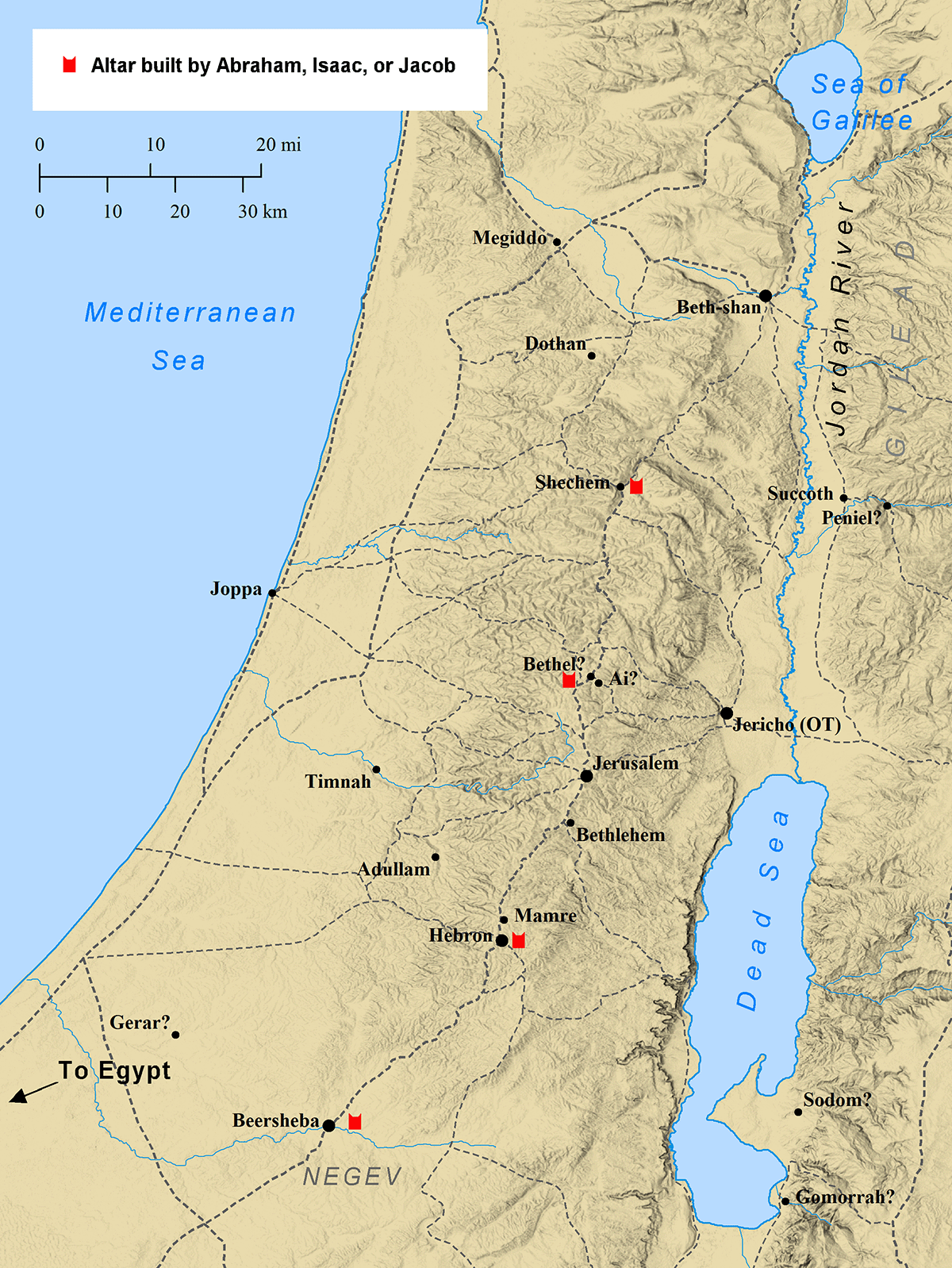 Locations of pertinence changed over the centuries as the people and events affecting Israel came and went. The major periods in the history are here divided into six spans of time. Each of these is illustrated with a clickable map in the side column.