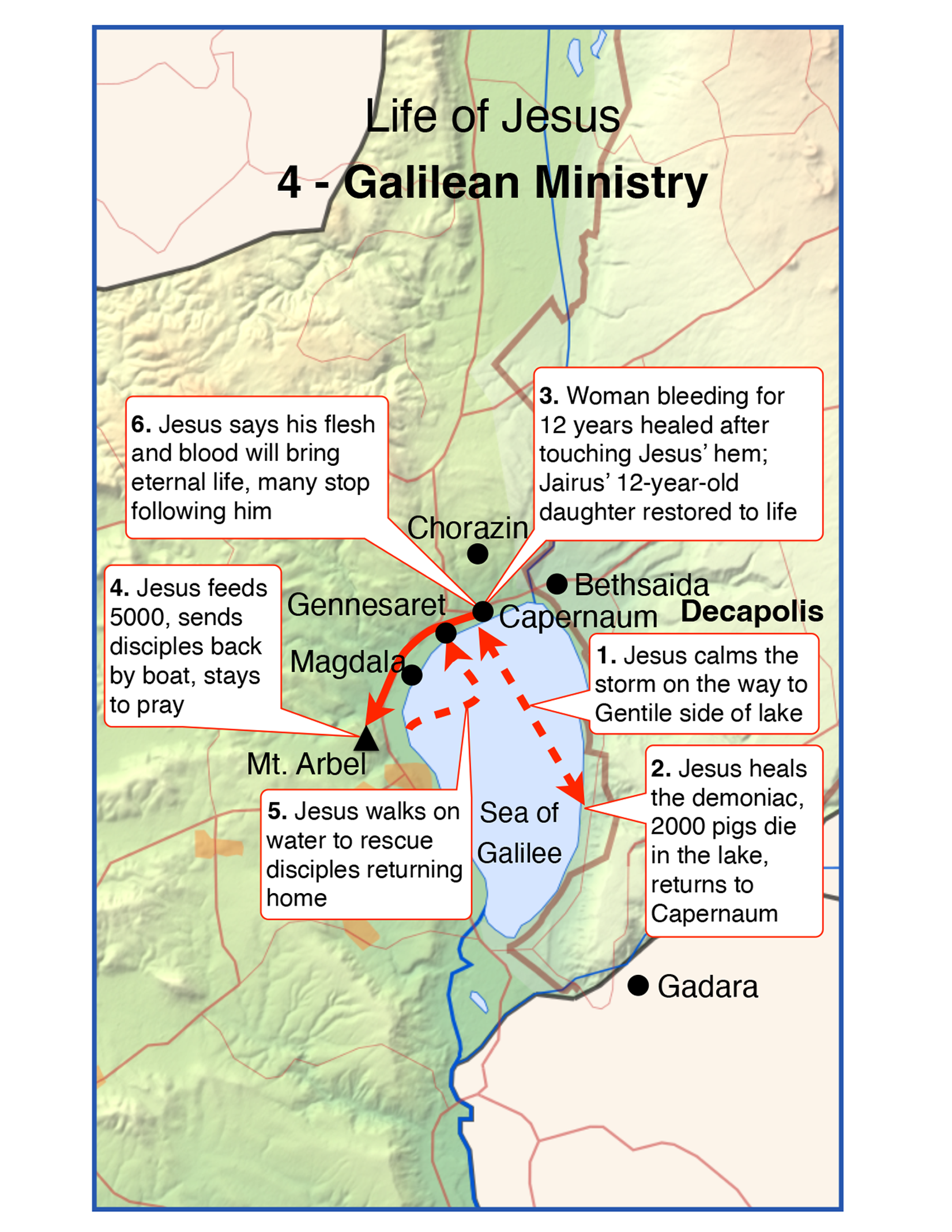 Jesus, now about 30 years old, travels away from his home-town of Nazareth in Galilee Luke 3:23