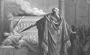 In 167 BC, a company of Greek soldiers appeared in Modi'in with orders to enforce Antiochus' ordinances of sacrificing to the Greek gods. Mattathias, being an esteemed member of the community, was asked to serve as an example and lead the village in the sacrifice to the pagan deities, while being promised riches and the prestigious title of "Friend of the King" in return. Mattathias refused, and when another Jew stepped forward to do so, Mattathias slew both him and the government official overseeing the sacrifice, and rallied his supporters: